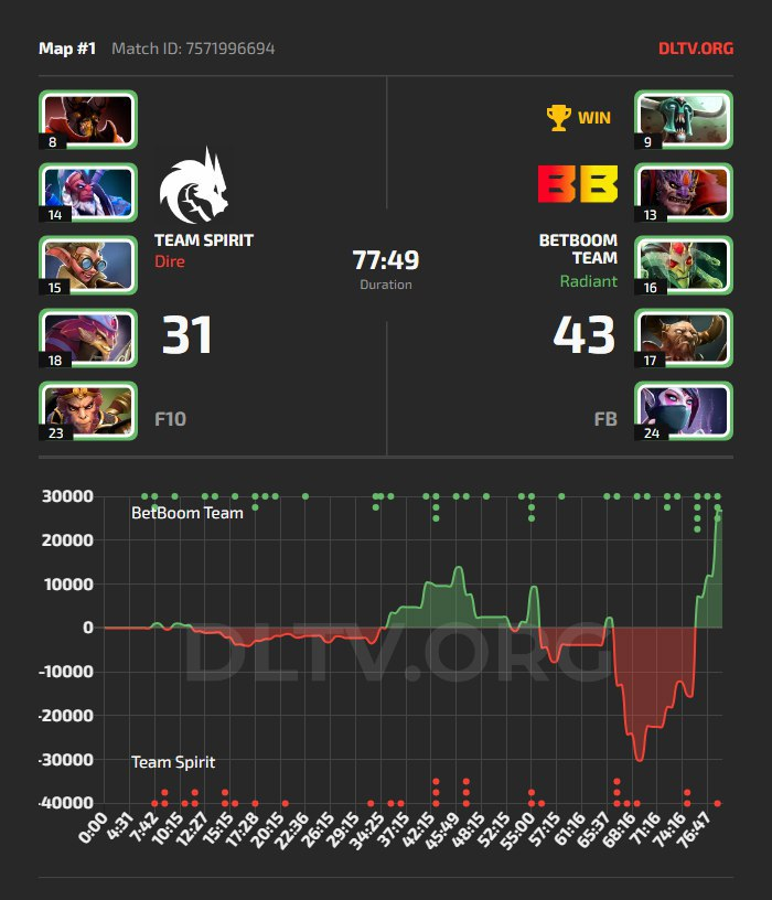 Group B matches became more interesting when Team Spirit faced the BetBoom Team. The first map between the CIS giants had to be one of the best games in the tournament so far. It was a back-and-forth 77-minute game featuring close team fights, multiple buybacks, and, of course, some Rapier action. Eventually, the BetBoom Team could close the game after an impeccable performance from MieRo’s Centaur Warrunner.