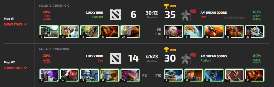 American Goons is another notable competitor in the North American qualifiers, as they could easily beat Peruvian team Lucky Bird with no issues. The Goons managed to beat them in a clean 2-0 fashion.