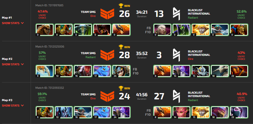 However, it seemed like Blacklist lost momentum after the pause, as Team SMG began picking off Blacklist heroes one by one. Ultimately, Team SMG won after an excellent performance from MidOne’s unkillable Lifestealer.